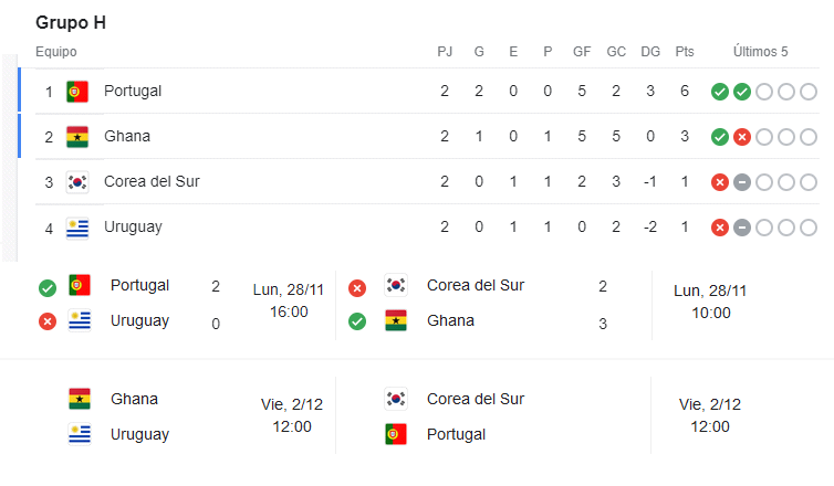 Con Portugal clasificado y 3 que pelean por ir a jugar octavos con Brasil. Uruguay llegar con chances al final de la fase de grupos, pero Corea del Sur también.